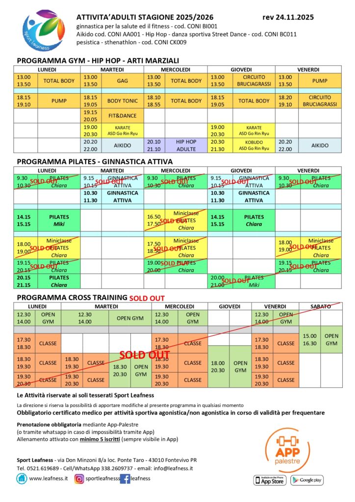 Programma attività in corso – area Adulti